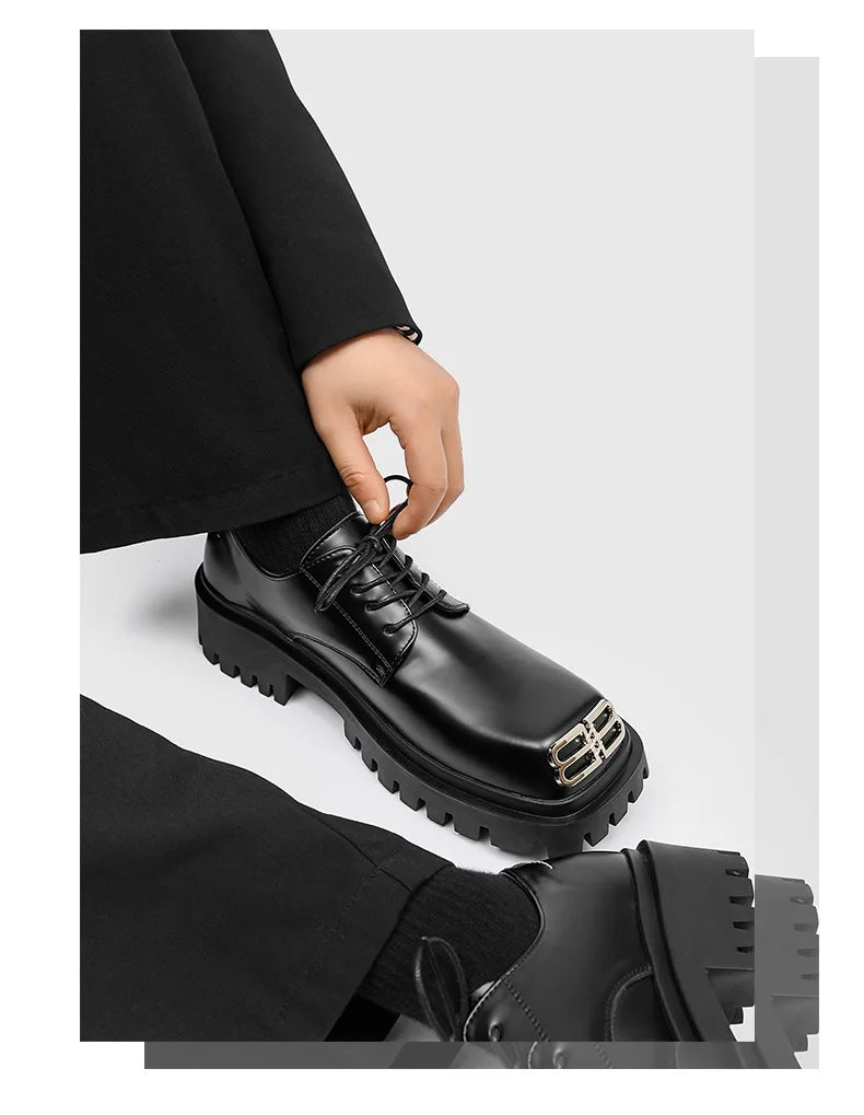 Square Toe Derby Shoes for Men Thick Soles Black Business Formal Casual Leather Shoes